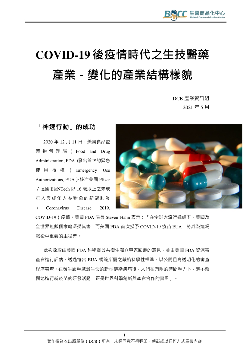 COVID-19後疫情時代之生技醫藥產業-變化的產業結構樣貌