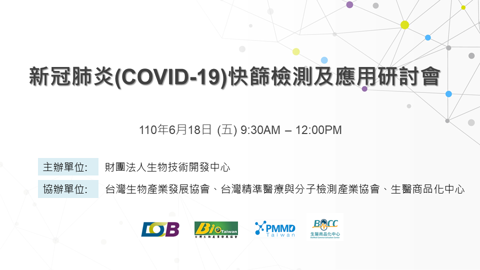 為了配合政府防疫措施,加強企業及民眾對新冠肺炎檢測及快篩作業的瞭解,以及台灣防疫產業遭遇到的問題,生物技術發中心(簡稱生技中心)結合台灣生物產業發展協會、台灣精準醫療與分子檢測產業協會以及生醫商品化中心,在今日(6/18)舉辦一場線上研討會。